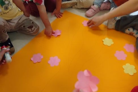 - naklejaliśmy kwiaty w wiosennym sadzie.