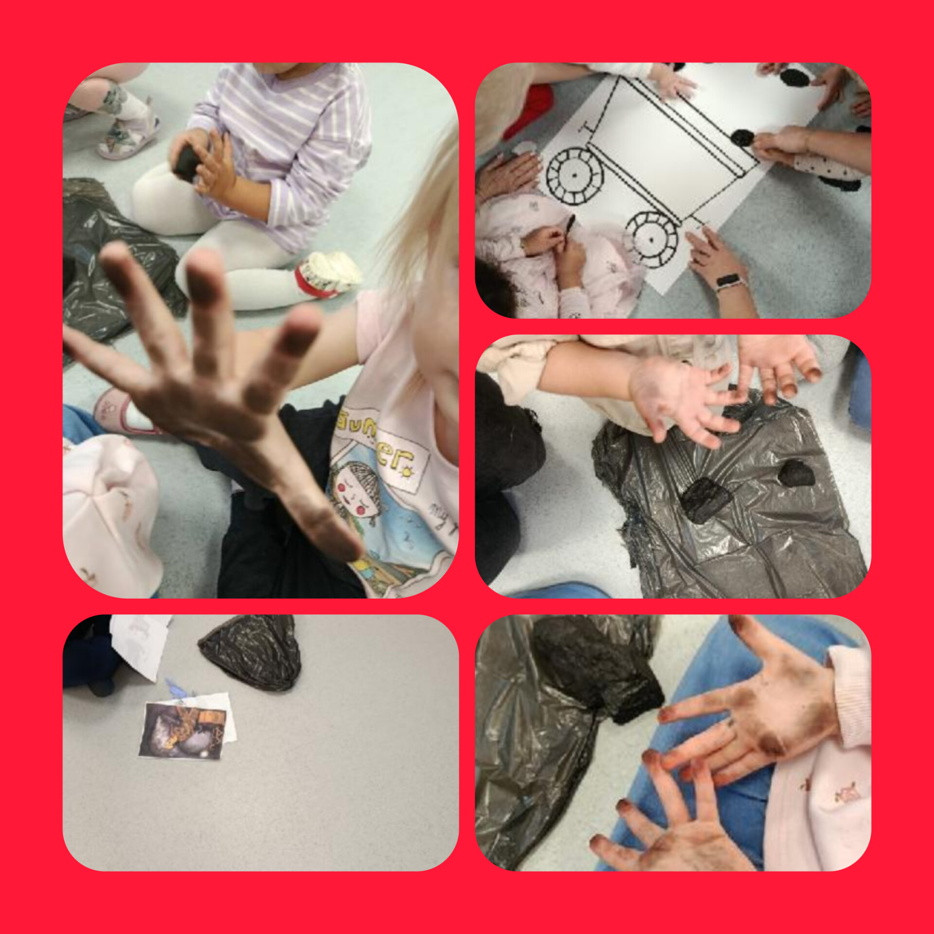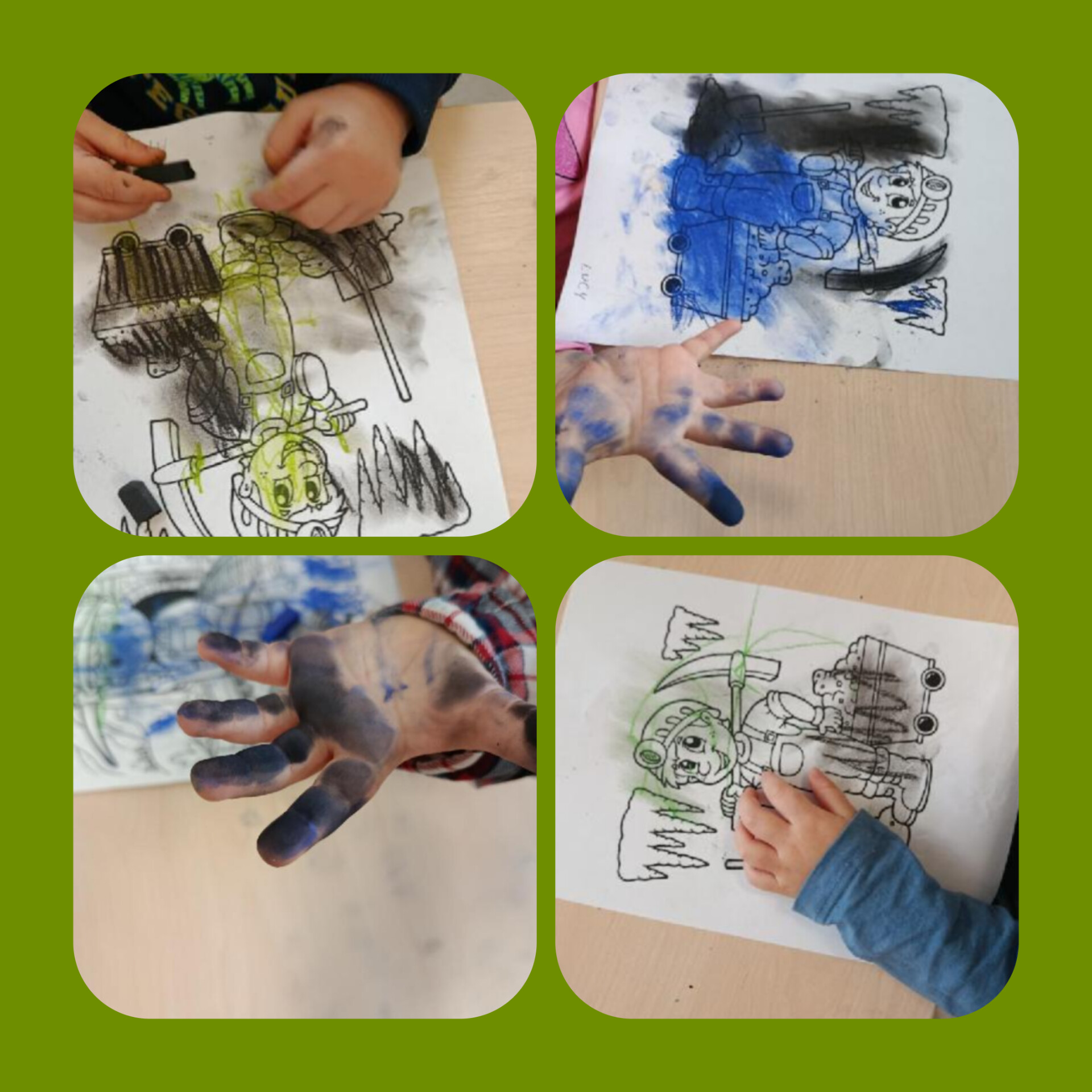Podczas zajęć tematycznych „Górnik” dzieci poznały węgiel – jego wygląd, fakturę oraz znaczenie. Maluchy z zainteresowaniem oglądały, dotykały i porównywały węgiel, rozwijając przy tym zmysł dotyku oraz ciekawość świata.