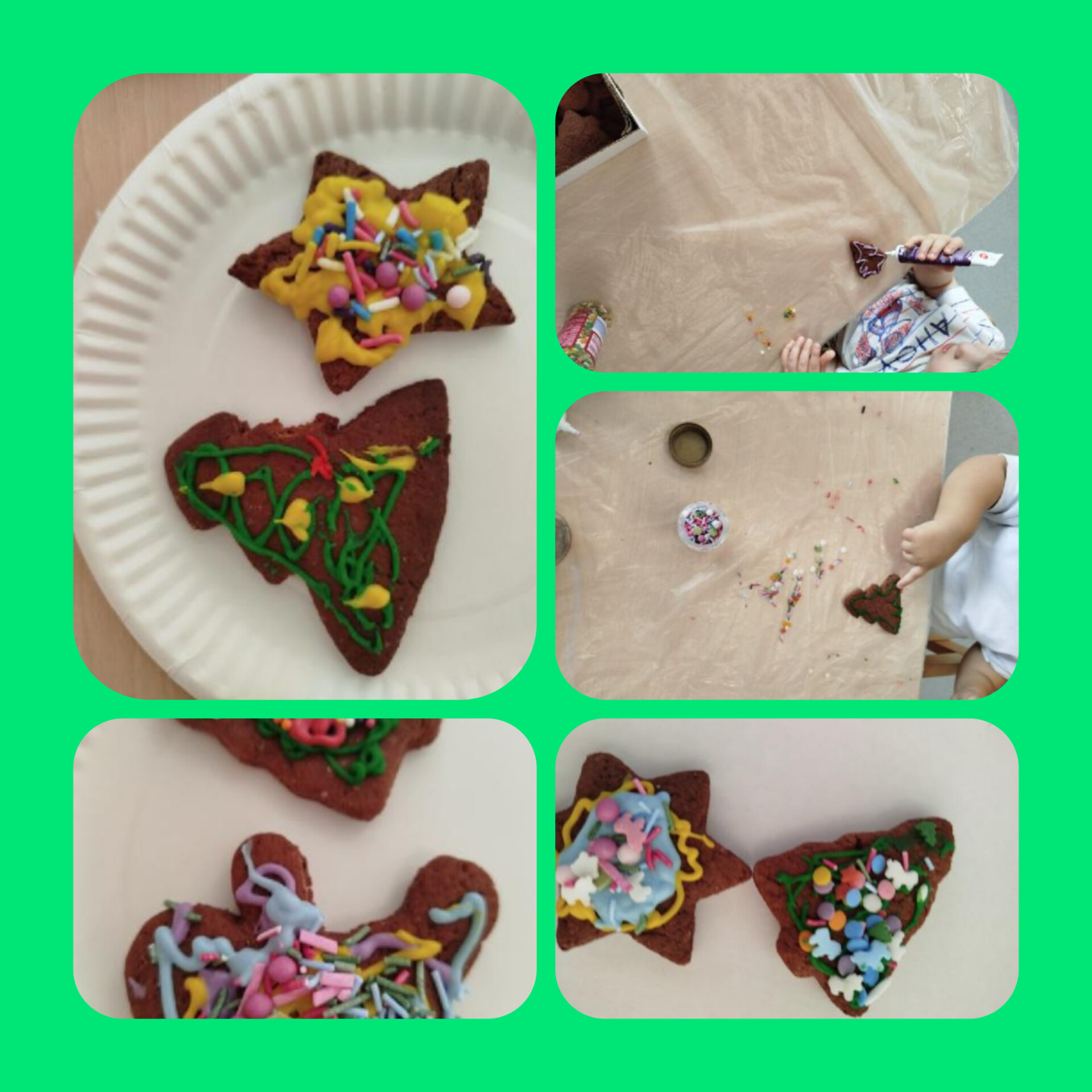 W okresie świątecznym odbyły się liczne zajęcia pełne ciepła i radości. Wspólnie z rodzicami dzieci uczestniczyły w zajęciach integracyjnych, które były wspaniałą okazją do wspólnej zabawy, rozmów i budowania więzi. Jednym z najbardziej wyczekiwanych momentów było ozdabianie pierników – kolorowe lukry, posypki i uśmiechy dzieci stworzyły prawdziwie świąteczną atmosferę.
