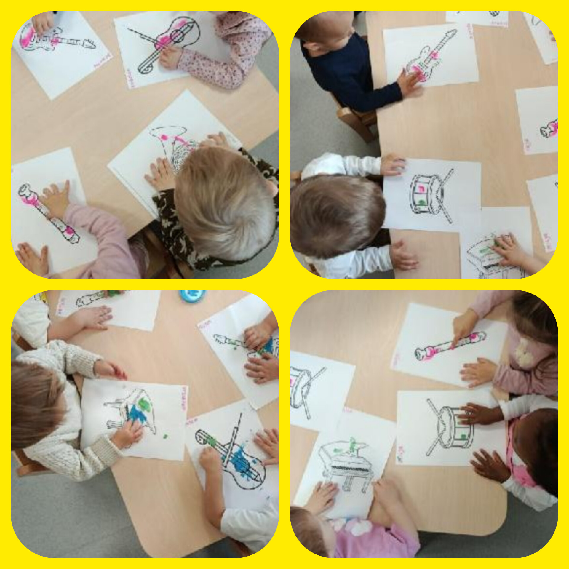 W kolejnych dniach w sali rozbrzmiewały rytmy, bo dzieci stworzyły swoje własne instrumenty muzyczne. Powstały pięknie udekorowane, różnorodne instrumenty, na których później wspólnie muzykowaliśmy.