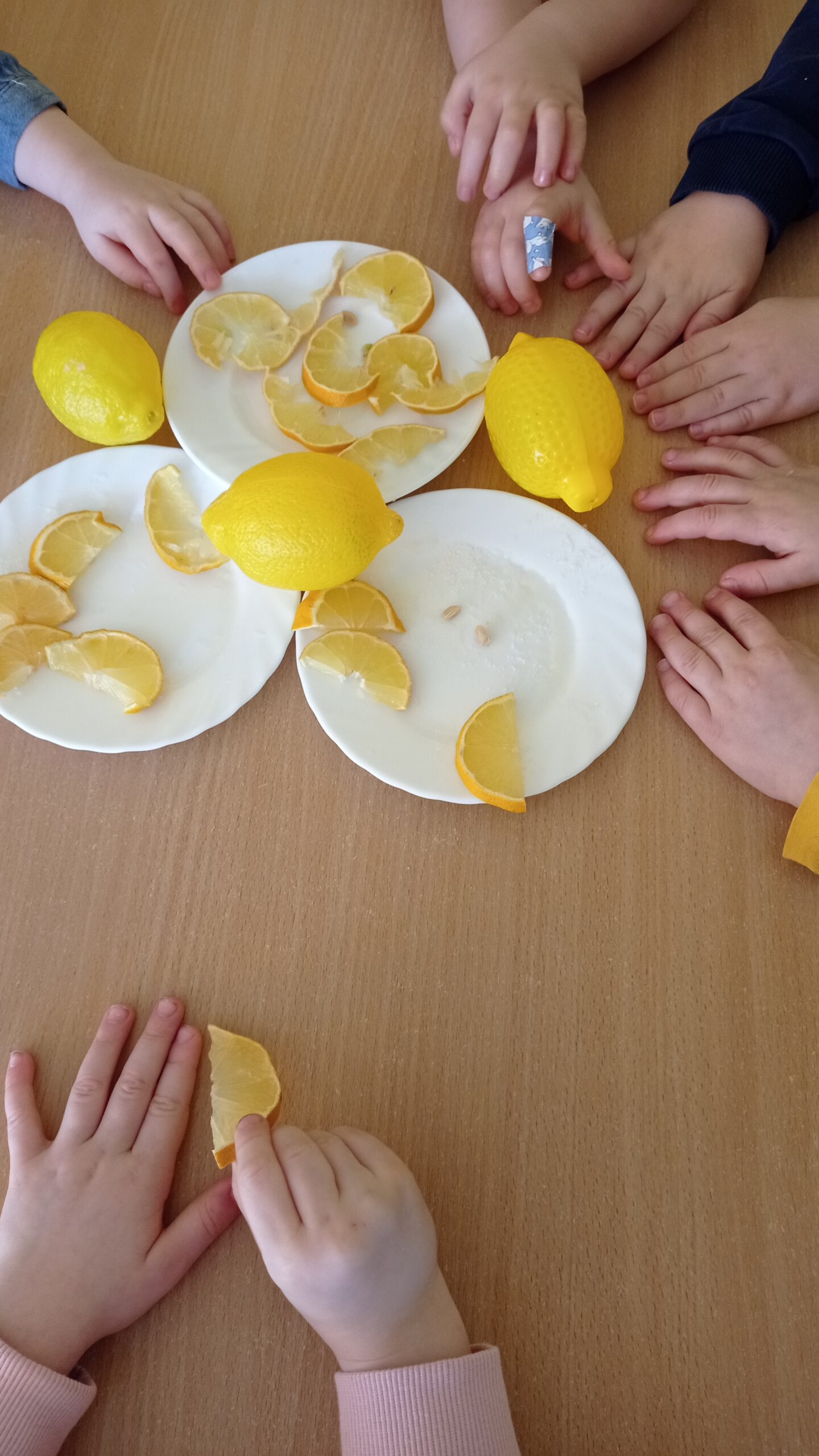 Podczas zajęć sensorycznych dzieci poznawały smak cytryny i utrwalały kolor żółty. Nie zabrakło również zabaw swobodnych i sensorycznych, które wspierały ich rozwój i dostarczały wiele uśmiechu.