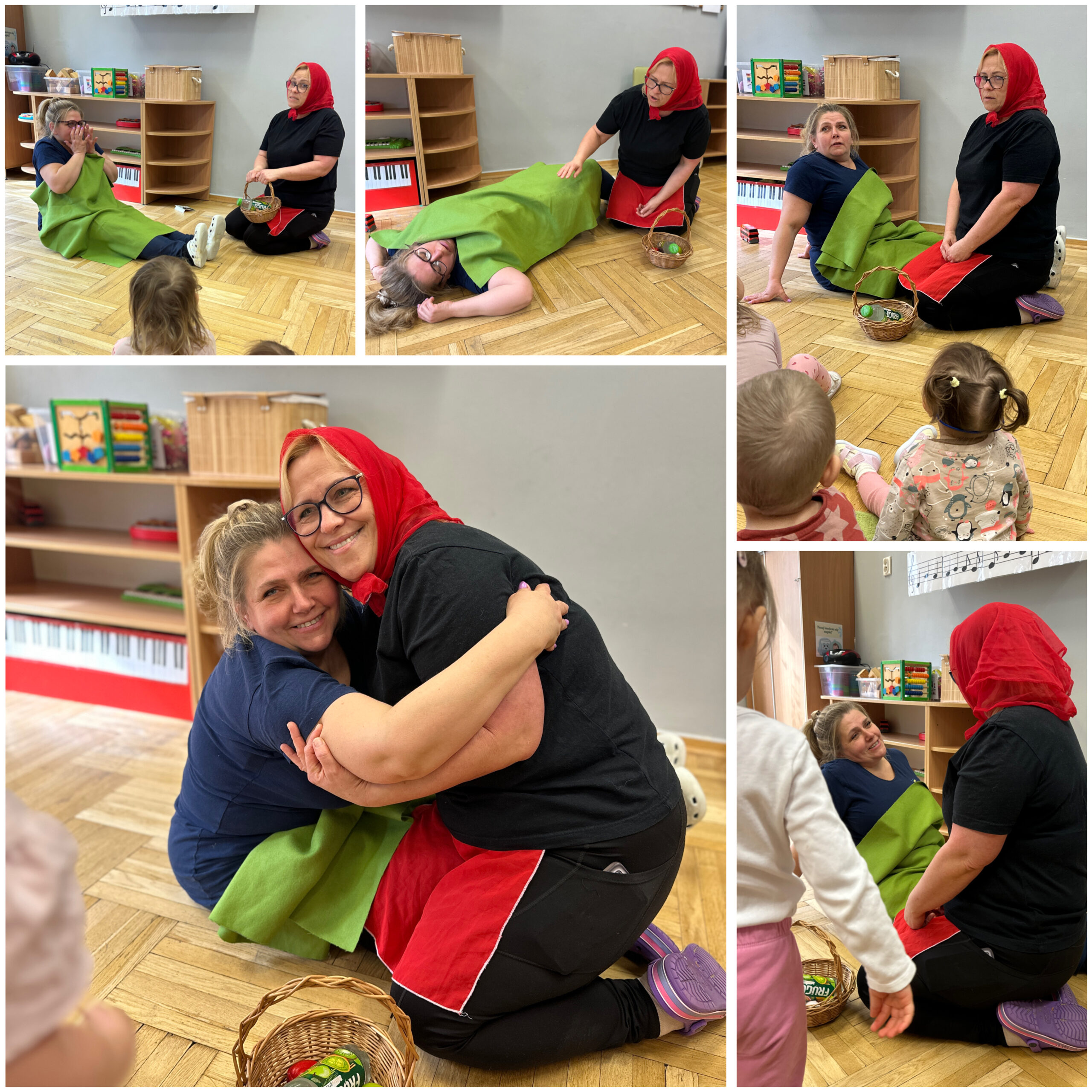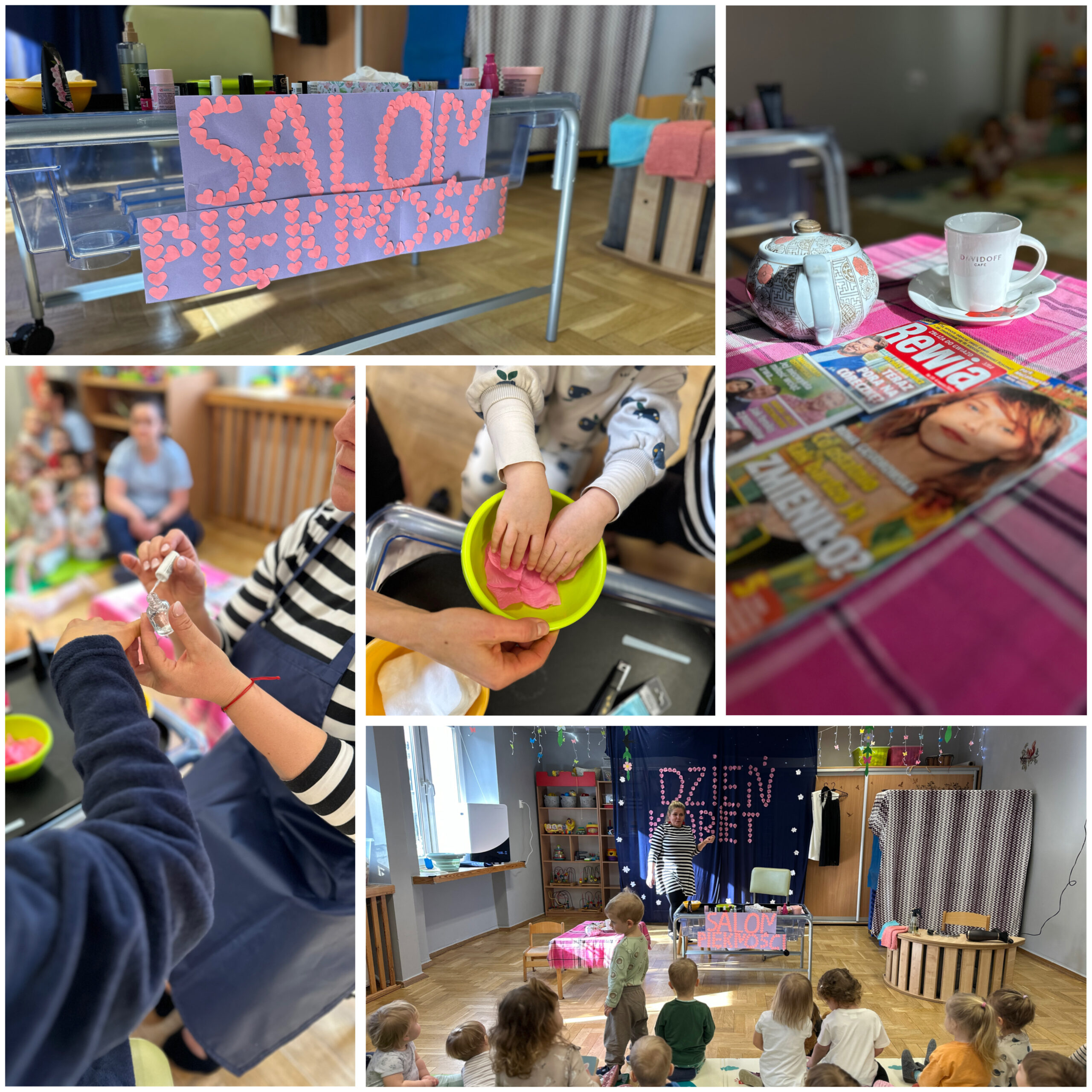 Duże emocje wzbudziło przedstawienie „Salon piękności”. Dzieci z zainteresowaniem śledziły historię bohaterów, a potem same włączały się do zabawy, odgrywając role i tworząc własne małe przedstawienia w sali. To wydarzenie rozwijało wyobraźnię, uczyło współpracy i pozwalało dzieciom swobodnie wyrażać emocje.