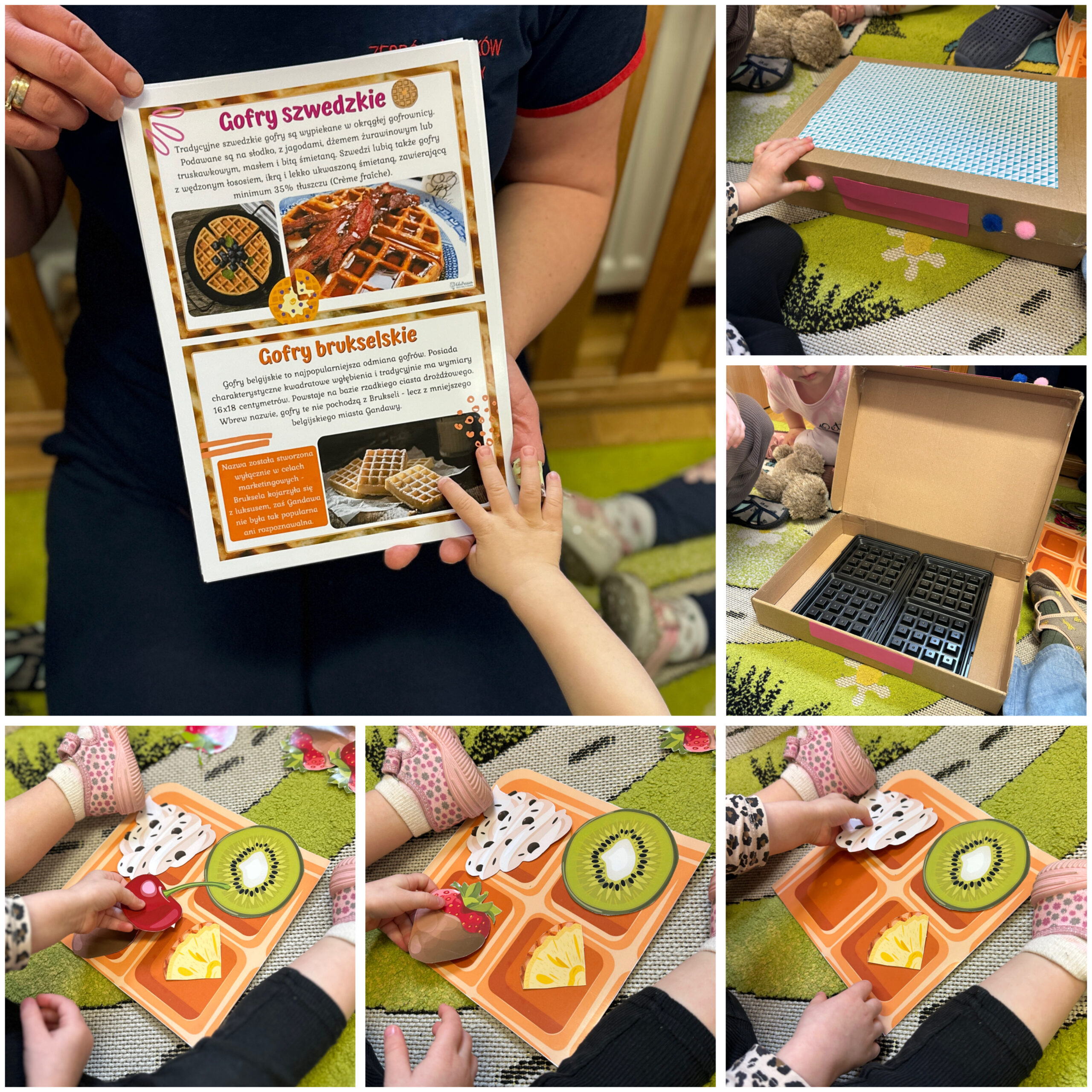 Nie mogło zabraknąć słodkich chwil podczas Dnia Gofra. Dzieci dekorowały swoje gofry różnymi dodatkami i wspólnie próbowały pysznych słodkości. Wspólna degustacja wywołała uśmiechy i wprowadziła mnóstwo radości do naszej sali.