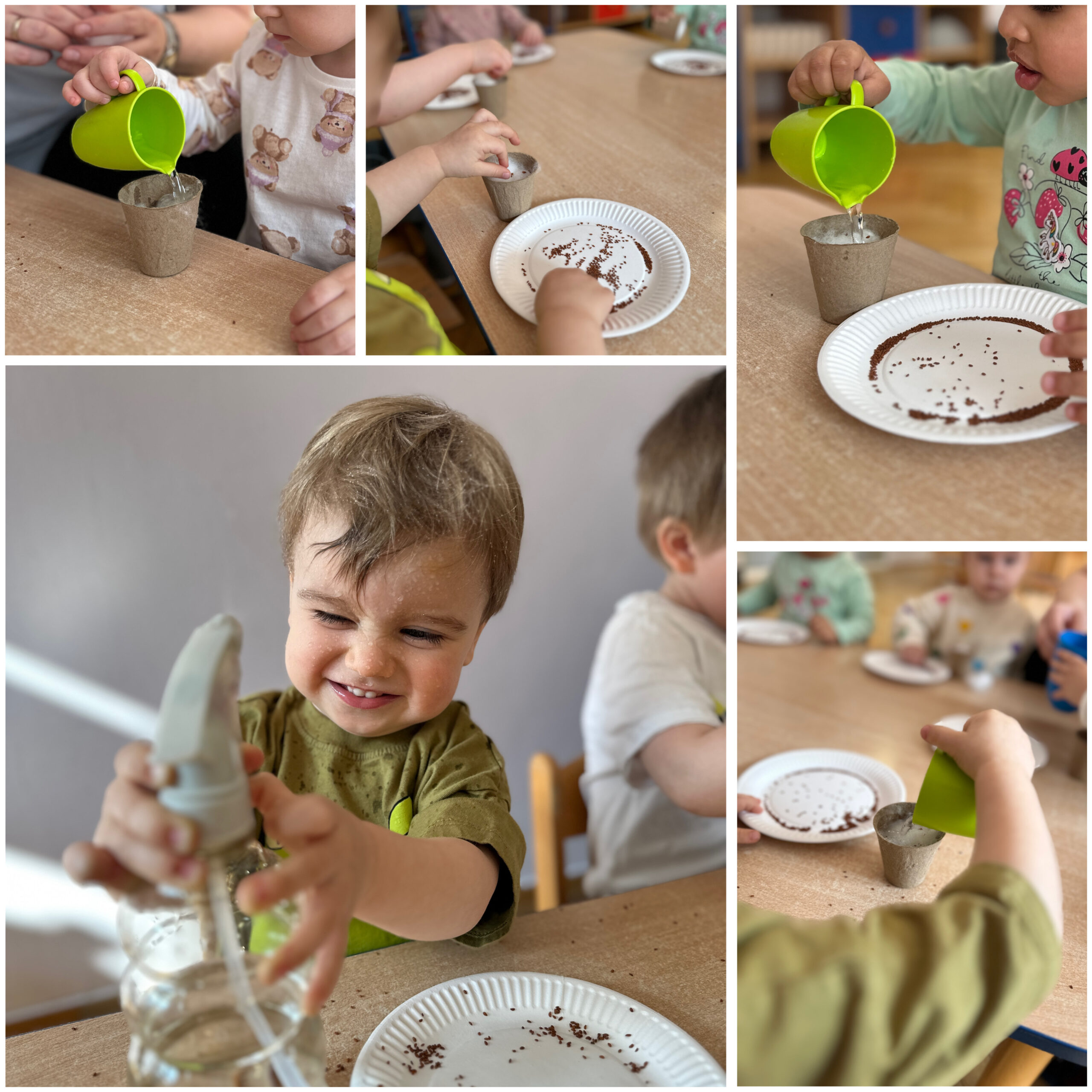 W ramach naszych wiosennych zajęć dzieci miały okazję samodzielnie zasadzić rzeżuchę. Codziennie obserwowały, jak kiełkuje, ucząc się cierpliwości, systematyczności i uważności na zmiany zachodzące w przyrodzie. Każdy nowy listek wzbudzał u maluchów zachwyt i ciekawość.