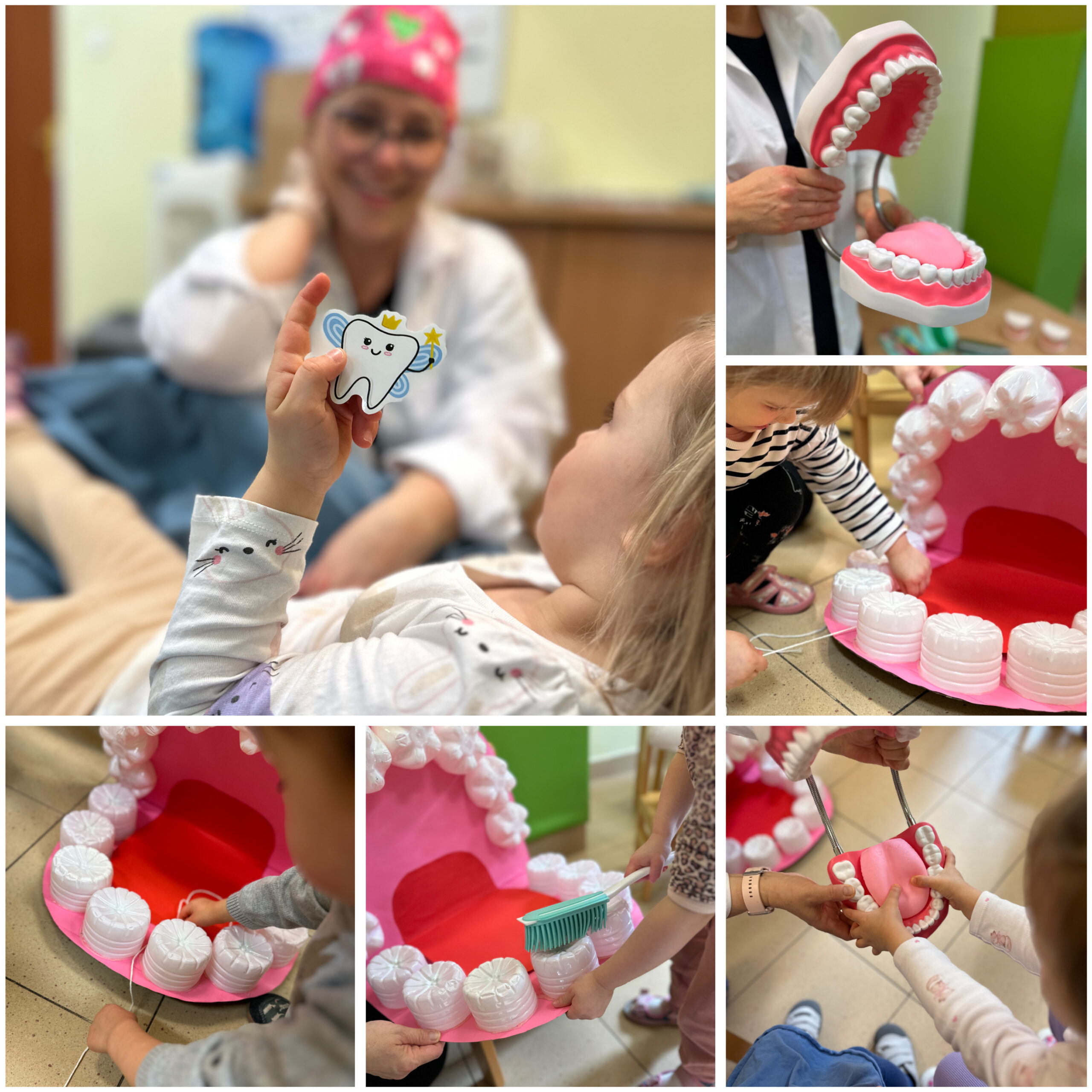 Na początku miesiąca obchodziliśmy Dzień Dentysty. W przyjaznej i wesołej atmosferze dzieci dowiedziały się, jak dbać o swoje ząbki. Dzieci poznawały różne przyrządy stomatologiczne w bezpiecznej formie ćwiczyły „mycie ząbków” .To był dzień pełen zabawy i nauki, który pokazał, że dbanie o zdrowie może być ciekawe i przyjemne.