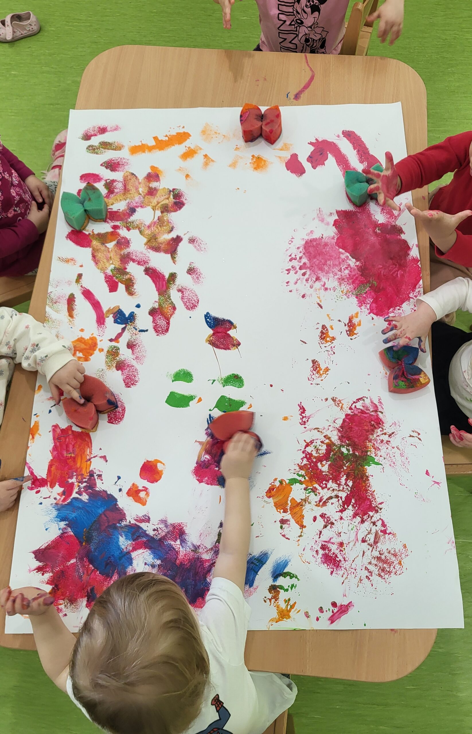 W marcu wraz z nadejściem cieplejszych dni dzieci z radością korzystały z pierwszych wyjść po zimie, ciesząc się słońcem i świeżym powietrzem. W salach odbywały się ciekawe zabawy światłem i cieniem, które rozwijały dziecięcą ciekawość i wyobraźnię. Zmienna marcowa pogoda stała się inspiracją do różnorodnych prac plastycznych związanych z deszczem, słońcem, chmurami i wiatrem. Ważnym wydarzeniem było także artystyczne wystąpienie „Moje małe gospodarstwo”. Nie zabrakło również codziennych zabaw ruchowych, które dostarczały wiele radości i wspierały rozwój sprawności fizycznej.