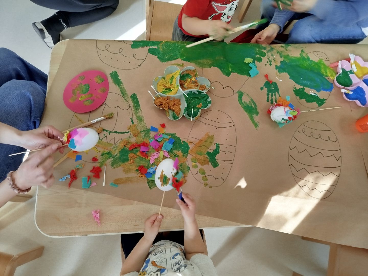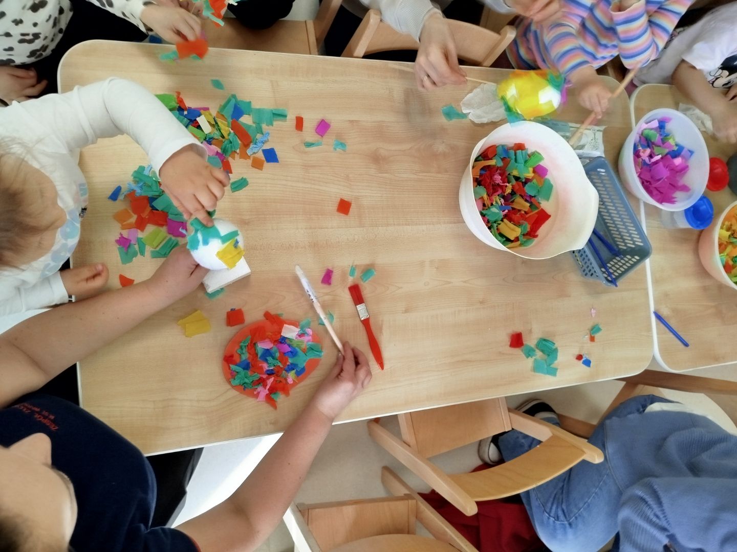 - bibułą ozdabialiśmy jajeczka wielkanocne,