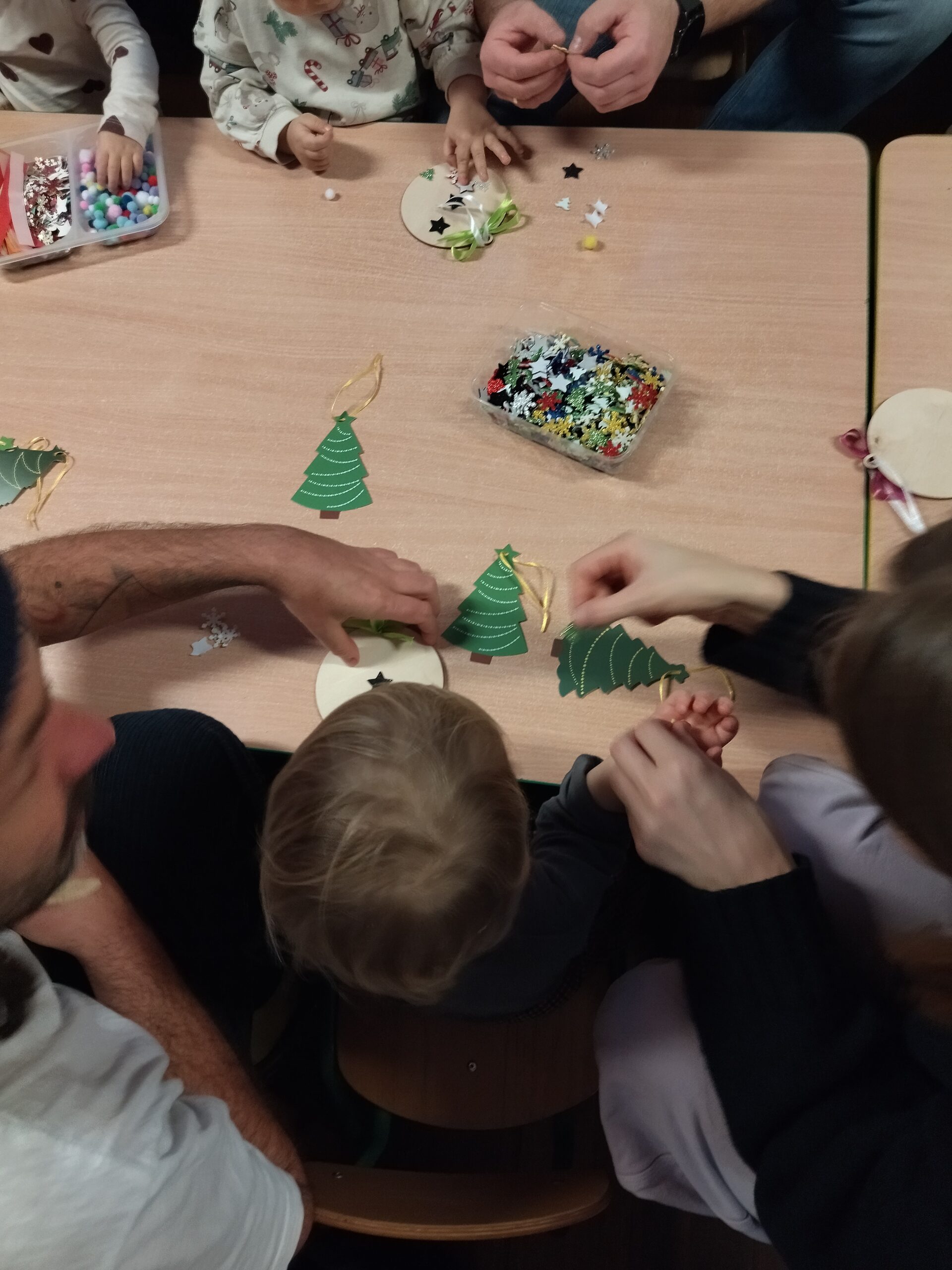 W grudniu nasze maluszki ze wszystkich grup razem ze swoimi rodzicami oraz rodzeństwem brały udział w Warsztatach Świątecznych. Były tworzone piękne świąteczne ozdoby, min. bombki, choinki, stroiki świąteczne i maskotki „Ciastusie”. Następnie każda z grup ozdabiała choinkę bombkami i łańcuchami. Po uroczystym ubraniu choinki nasz Żłobek odwiedził Święty Mikołaj. Każde dziecko otrzymało prezent, a wszyscy chętni mogli zrobić sobie zdjęcie ze Świętym Mikołajem. Na sam koniec goście zostali zaproszeni na świąteczny słodki poczęstunek, który przygotowały nasze Panie Kucharki.