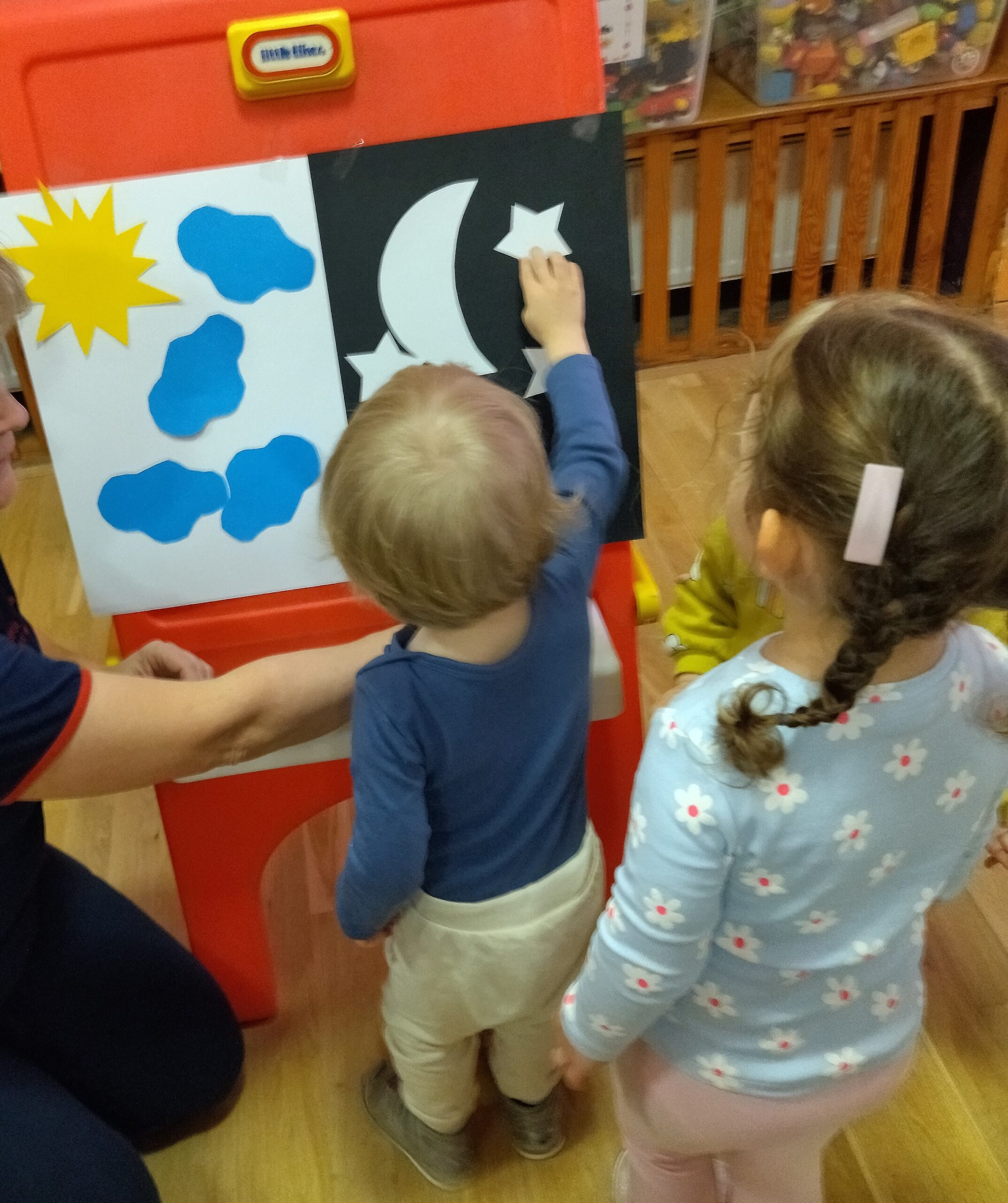 Dzieci z Grupy IV dowiedziały się jak wygląda dzień, a jak wygląda noc oraz czym się charakteryzują te dwie pory dnia. Ponadto dzieci brały udział w aktywnościach o sygnalizacji świetlnej na drodze. Odbyły się również aktywności o kolorach oraz o Afryce.
