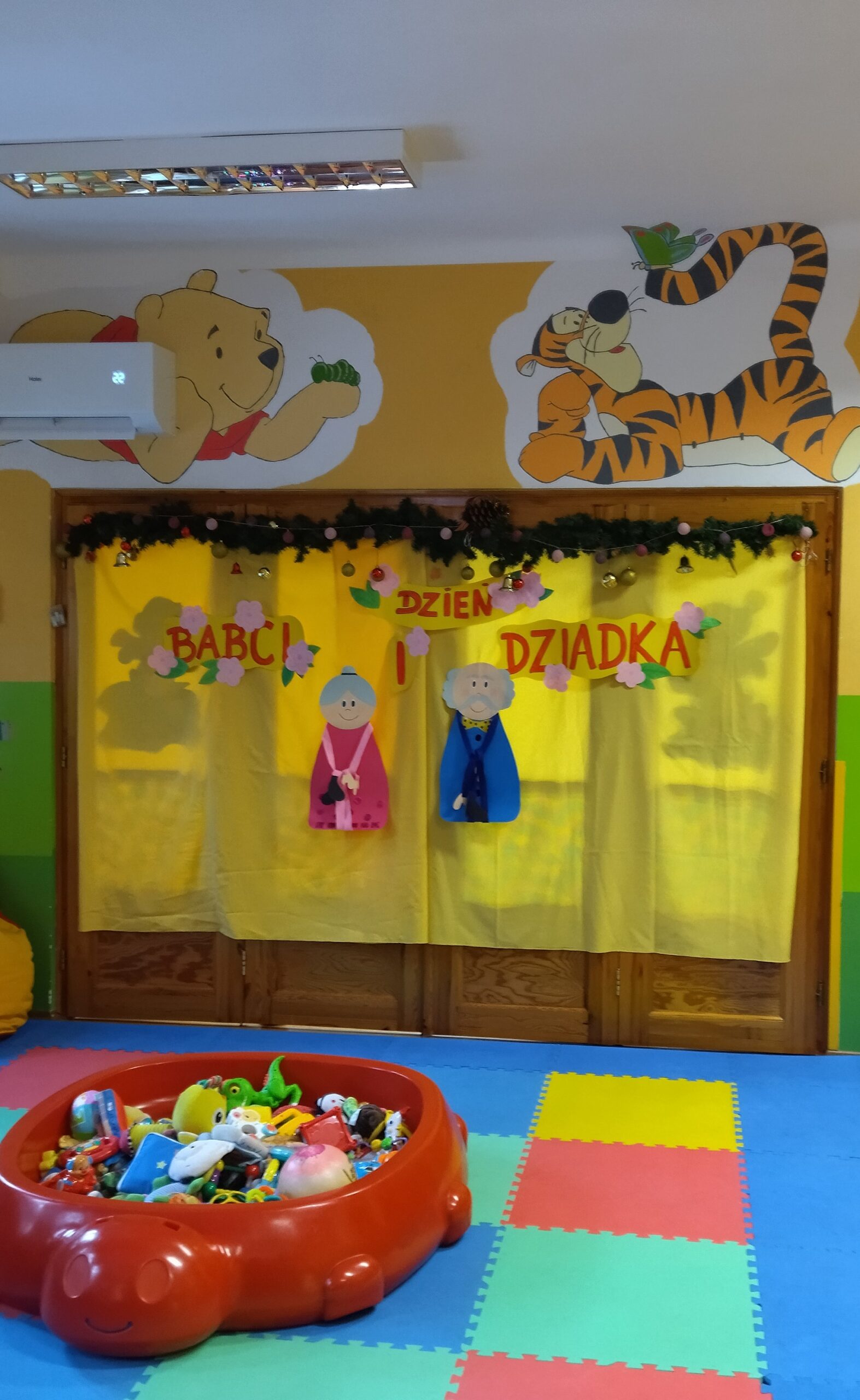 W styczniu nasze maluszki ze wszystkich grup razem ze swoimi Babciami i Dziadkami oraz Rodzicami brały udział w Obchodach Dnia Babci i Dziadka. Każda z grup przygotowała z tej okazji aktywności, aby spędzić razem czas. Były między innymi: rysowanie portretu Babci przez Dziadka, robienie wraz z wnuczkami naturalnych grzechotek z butelek , kasz, makaronów, wspólne tańczenie i śpiewanie piosenek, wręczanie drobnych upominków wykonanych wspólnie przez dzieci i opiekunki. Ciocie z grupy II przygotowały dla zaproszonych gości z grupy II i III wesołe przedstawienie pt. „Niezawodna Pamięć Babci”. Na sam koniec goście zostali zaproszeni na słodki poczęstunek, który przygotowały nasze Panie Kucharki.